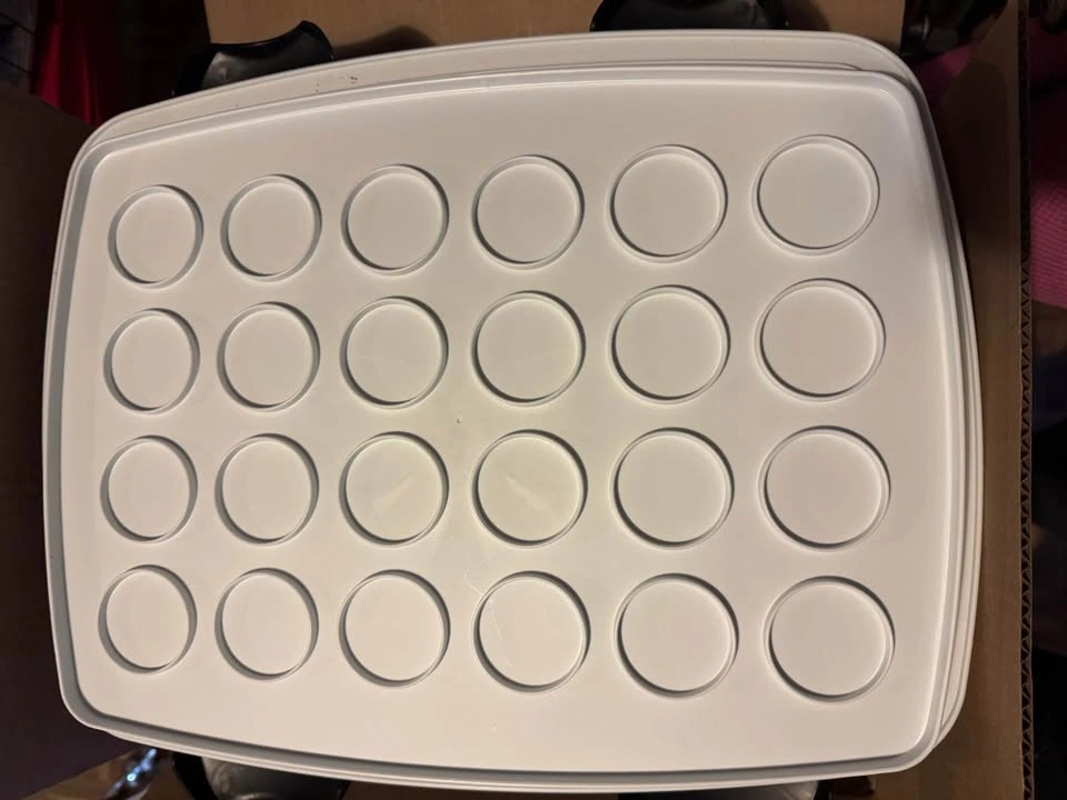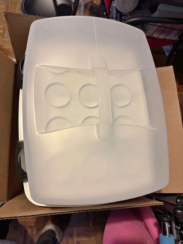 278This storage container is designed to accommodate a variety of baked treats. It easily holds a large cake slab, 24 mini cupcakes, or 12 standard-sized cupcakes. Featuring a secure lid that snaps shut, it ensures that your delicious creations remain safe and fresh during transport or while stored at home. Whether bringing treats to a party or keeping them nicely organized in your kitchen, this container offers both convenience and peace of mind. Pick up Bloor St W & The East Mall