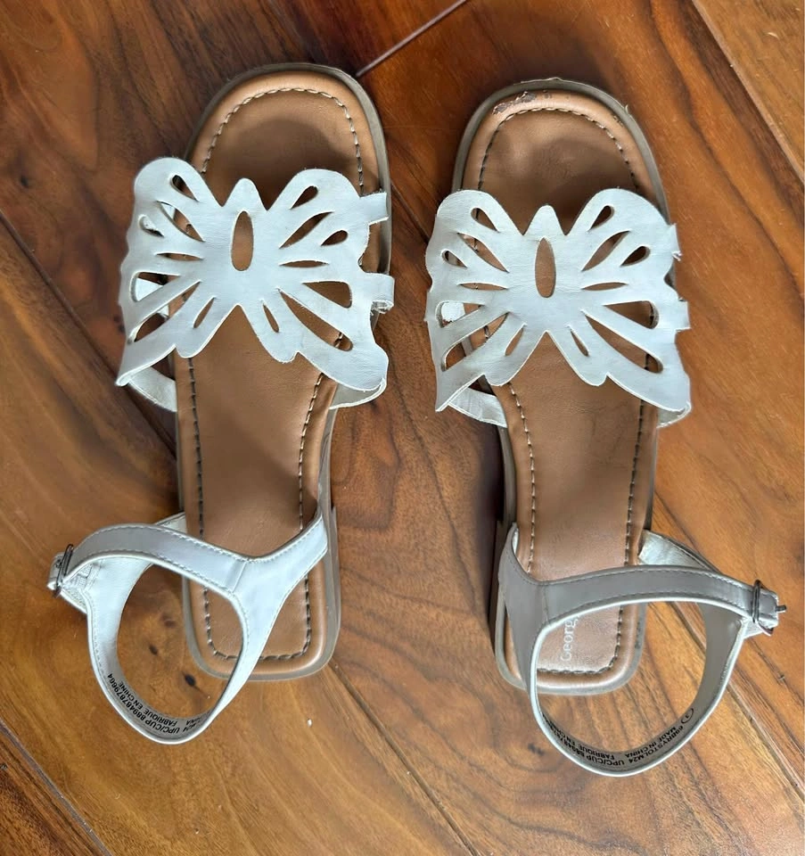 60Girls White Butterfly Sandals Size 3 Porch PU South Arm