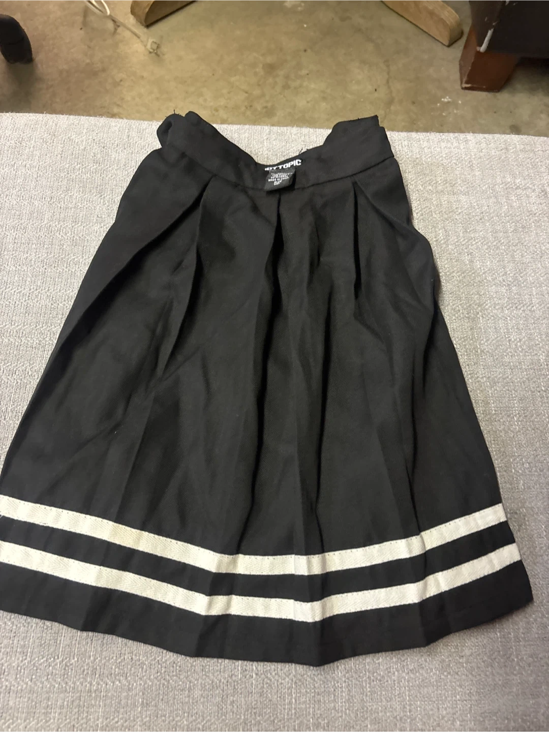 25Selling a Hot Topic skirt in size MD. It's black with white stripes near the bottom. The shell is made of 80% polyester and 20% rayon