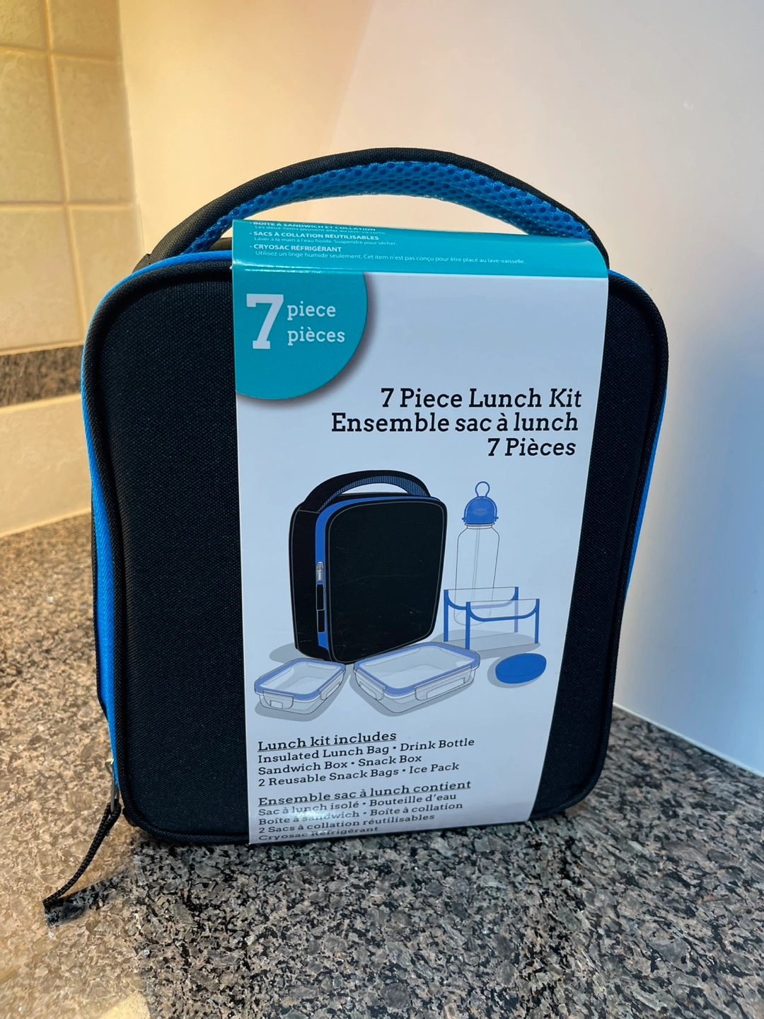 33Brand new 7-piece lunch kit! It includes an insulated lunch bag, a drink bottle, a sandwich box, two reusable snack bags, and an ice pack. Perfect for school, work, or picnics. REGULAR PRICE - 21.00 - SELLING for 13.00.