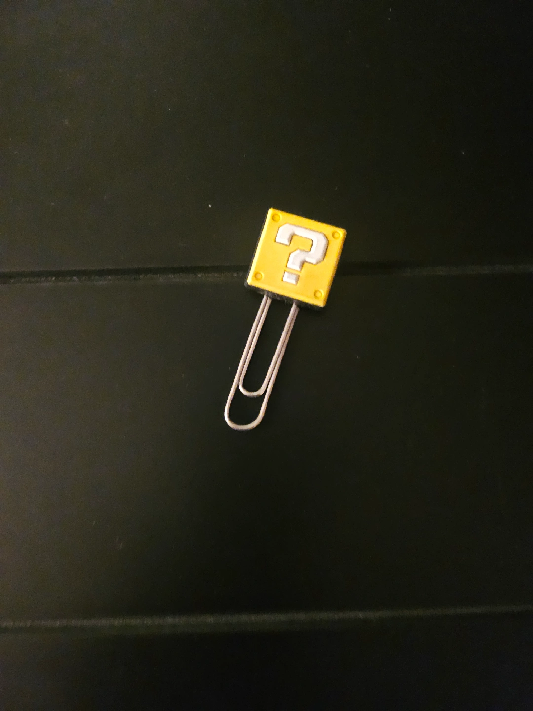 Add a touch of fun to your documents with this Super Mario question block paper clip! It's in great shape and ready to keep your papers organized with a bit of retro flair