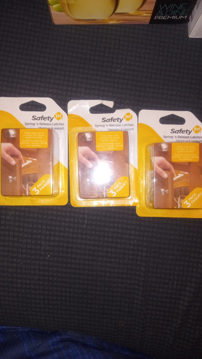 I have three packs of Safety 1st Spring 'n Release Latches. Each pack contains three latches.