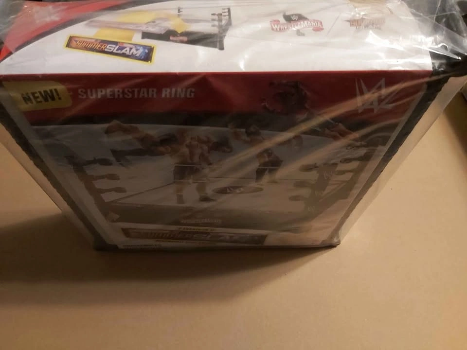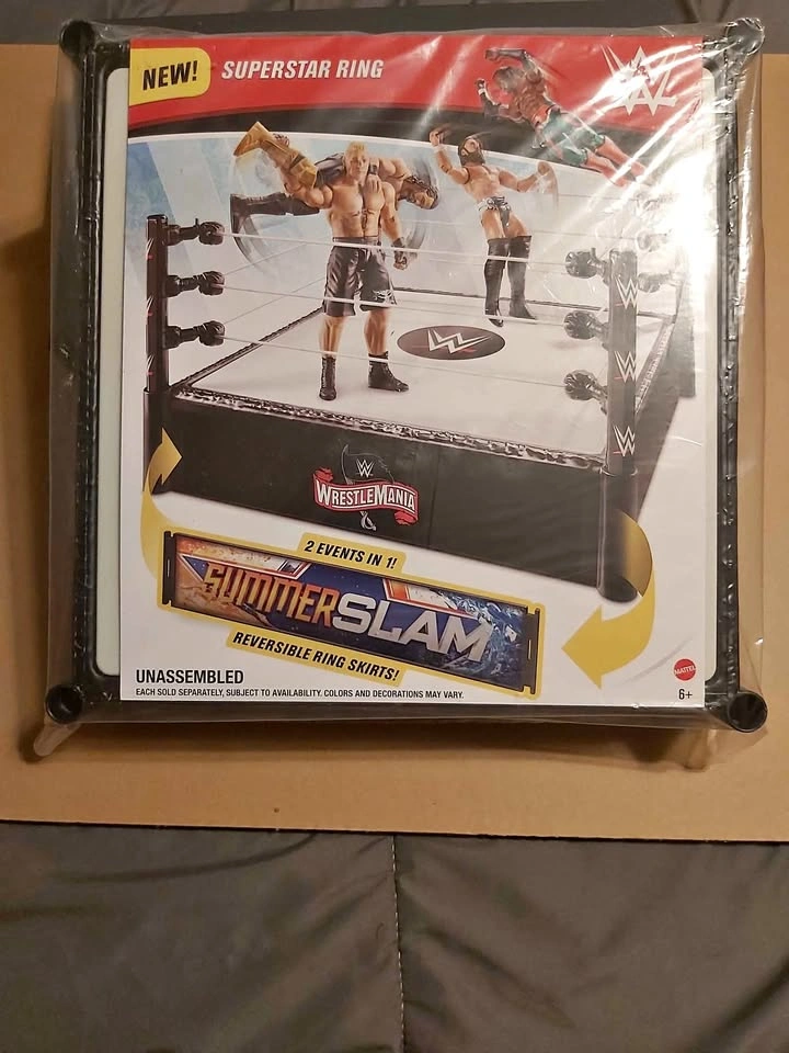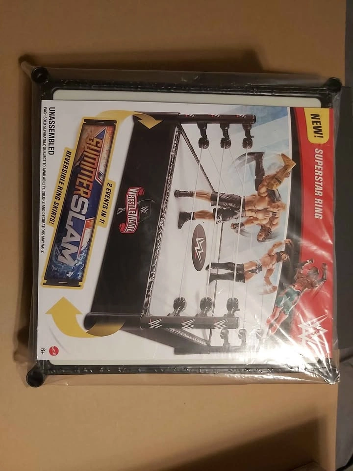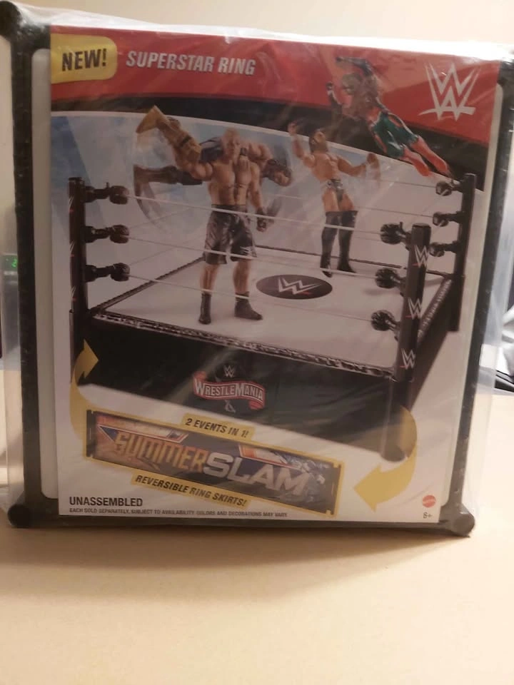 Selling this Brand new and still in package WWE reversible plate Superstar figure ring. 2 events in one Wrestlemania + Summerslam ( Great for Wrestling fan & collector ) Asking: $50.00 Pickup available in Etobicoke near The West Mall and Rathburn area. Thank you for viewing the listing.
