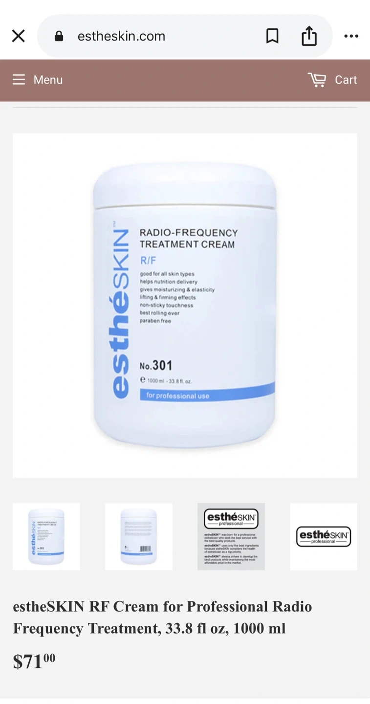 estheSKIN RF Cream, a product designed for professional radio frequency (RF) treatments