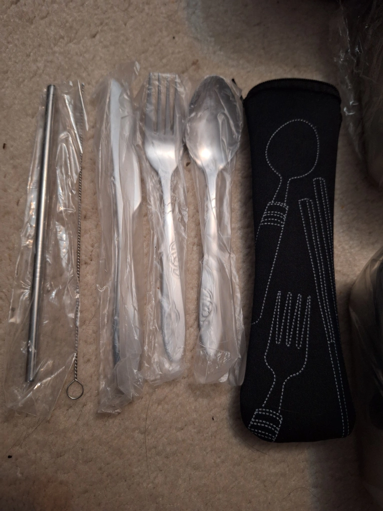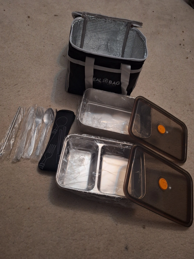 I have a brand new stainless steel bento lunch box set for sale! It comes with two stainless steel bento boxes, and optional set of utensils (fork, spoon, knife, straw and cleaning brush) in a carrying case and an insulated lunch bag. Perfect for taking lunch to work or school!