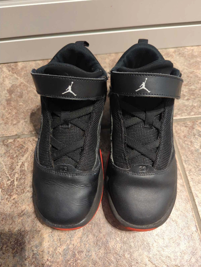 Step up your little one's shoe game with these Jordan black and red sneakers, sized 3Y, perfect for active play. These have been gently worn but are still in good condition, ready for their next adventure.