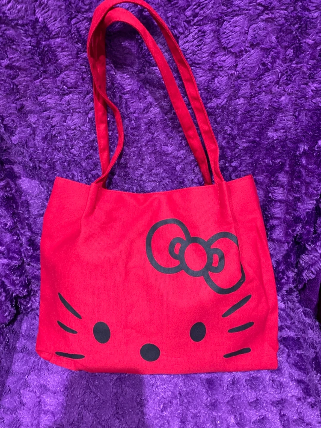 Selling a cute Hello Kitty tote bag! It's a vibrant red colour and features the iconic Hello Kitty face. Perfect for carrying your everyday essentials in style