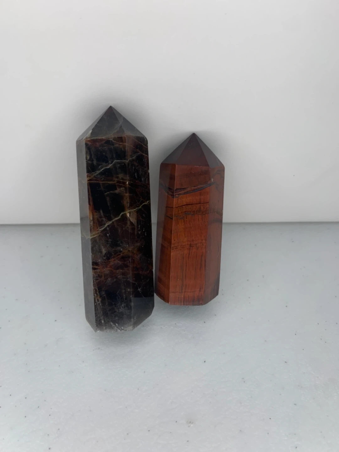 32Two beautiful crystal points in varying shades of brown. Perfect for adding a touch of natural elegance to your space or for your crystal collection