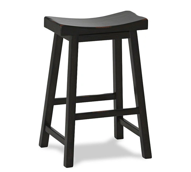 Dramatic angles and comfortable curves give this Tibetan barstool an Eastern style and versatile shape that are at home in any room. Visible joinery adds a rustic look. Black finish. Crafted of solid kiln-dried rubber wood. Kiln-dried wood helps prevent warping, splitting, cracking and developing mildew. Tongue-and-groove construction for the legs and edge-gluing for the seat. Counter Stool Packaging Dimensions & Weight: 28.75 x 21.5 x 5.75" h