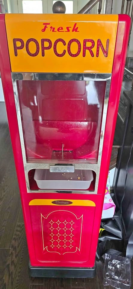 Popcorn maker (air fry, stands about 5ft tall), shakers, scooper, framed pictures and EVERYTHING YOU NEED for a great Friday night movie date! One of a kind, featuresque, vintage excellent corner unit for making REAL popcorn.