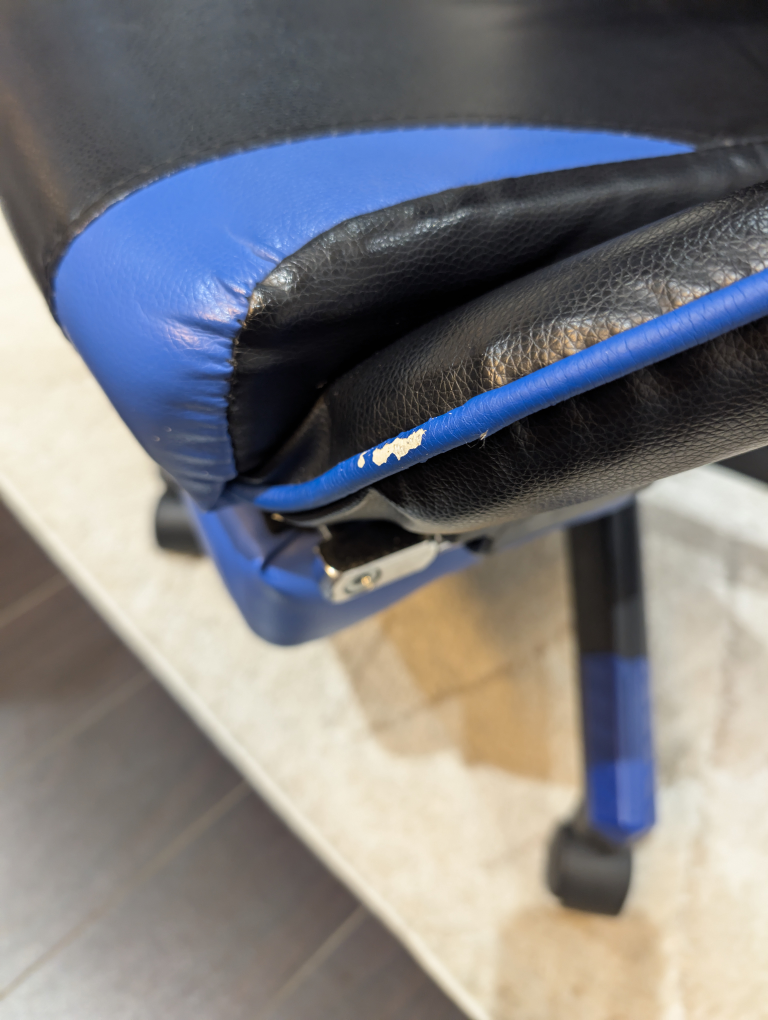 Selling a used X Rocker X Pro gaming chair in blue and black. It has a footrest and headrest for extra comfort during those long gaming sessions. There are some signs of wear, as shown in the photos, but it's still in good working condition and super comfy!