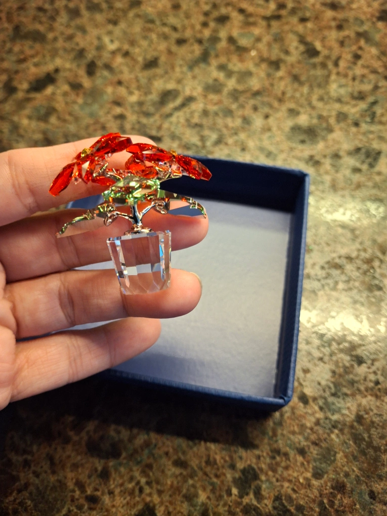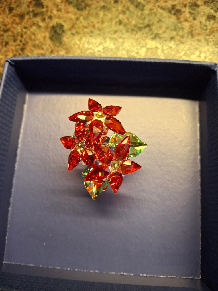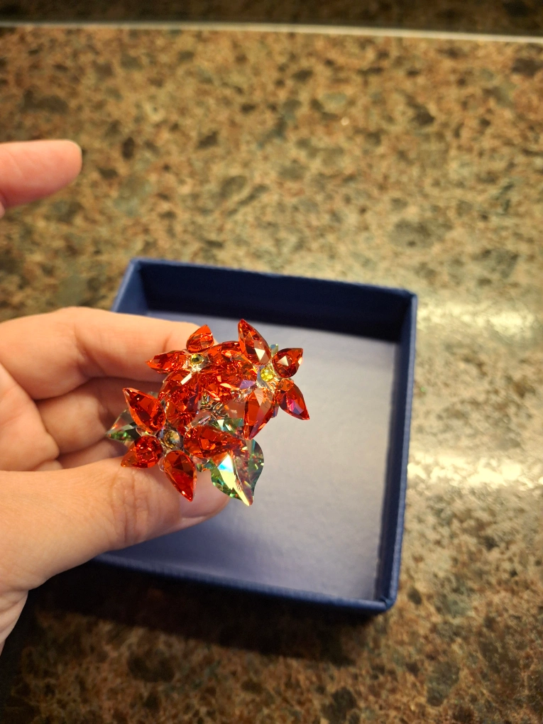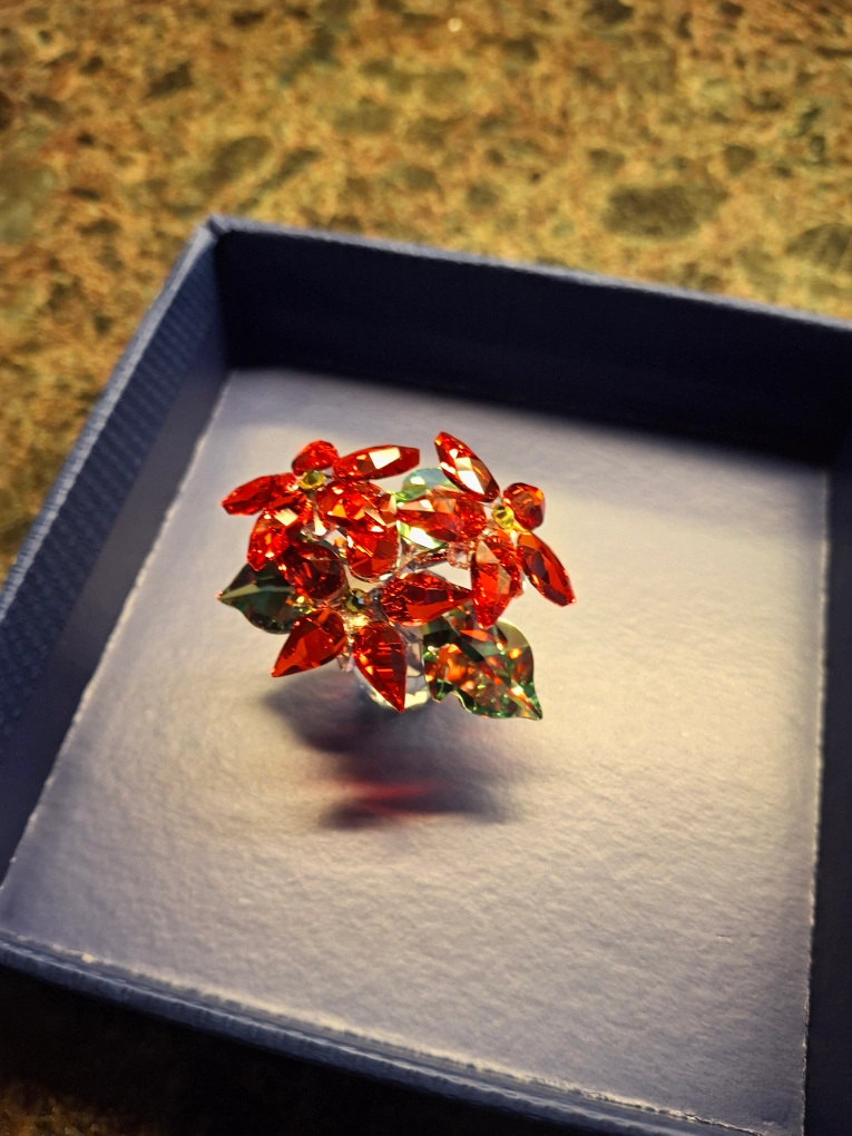 Swarovski poinsettia ornament. In new condition. Comes with box and casing. Pickup Thornton and Rossland in Oshawa