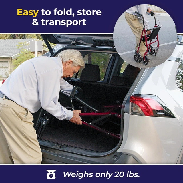 Brand new walker rollator. It comes pre-assembled and folded in original box. Ready to use out of the box. Retails at Amazon for $124 ($110 + tax). Save your money. Pickup from south London. I can deliver in London for an extra fee. Drive Medical 10257RD-1 Four Wheel Rollator with Fold Up Removable Back Support, Red Product details: Brand: Drive Medical Colour: Red Material: Steel Item weight: 8.12 kg, 17.9 lbs Product Dimensions: 64.8D x 78.7W x 59.7H Centimetres Style: 4 Wheel Rollator Comes with a durable padded seat and and a padded backrest that can be folded up or down Sturdy steel frame comes with a basket for storing personal items. Seat to Floor Arm Height is 21" 7.5" Non-marring casters are ideal for indoor and outdoor use and deluxe loop-locks to ensure rollator will not slip when seated Lever allows for independent handle height and angle adjustment Handle height: 31-37"; seat Dimensions: 8.5"(D) x 15"(w) x 21"(h); weight capacity: 300 lbs