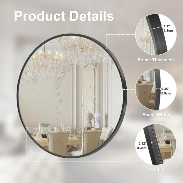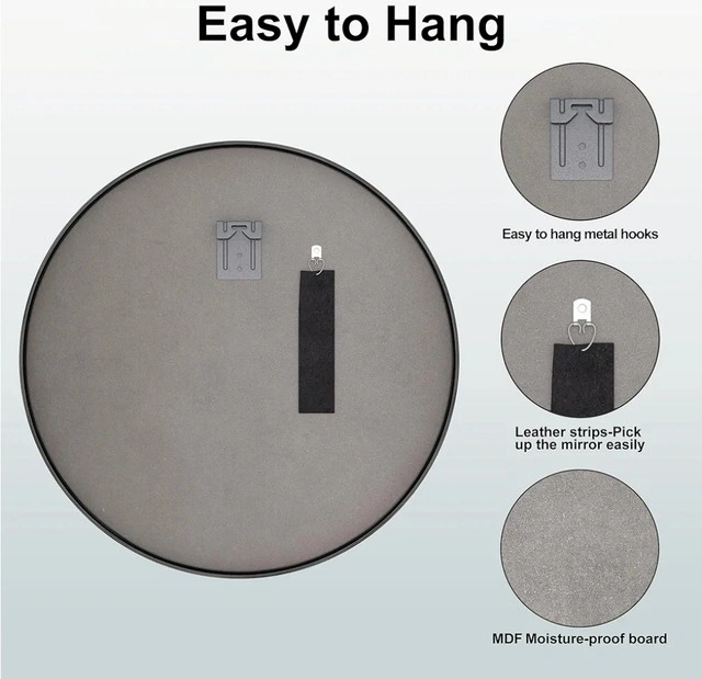 Brand New Mirror. It comes in original box with hanging hardware. Retails at Amazon for $203 ($180 + tax). Save your money. Arcus Home 30 Inch HD Black Round Mirror, Modern Circle Wall Mirror with Metal Frame, Mirror Round Black for Entryway Washroom Bedroom Living Room and Wall Mounted Mirror Product details: Brand: Arcus Home Room type: Home Shape: Round Product Dimensions: 76.2L x 76.2W Centimetres Frame material: Metal Style: Art Deco 【High Quality Mirror】Unlike the cheap aluminum used in other frames, our frames are made of high-quality steel, which is better in quality and makes the circle mirror look more upscale. At the same time, our frame is handcrafted "seamless design", compared with the obvious gap of the aluminum frame, we will pay more attention to quality and details in manual welding. 【Upgraded HD Lense】The lenses of our round mirrors are made with precision professional silver plating technology, making our silver mirrors 35% brighter than traditional aluminum mirrors. Each of our round mirrors has a high reflectivity of over 90%, and when you stand in front of it, you'll be pleasantly surprised to find yourself more refined and better-looking than ever! 【Multi-purpose Round Mirror】Still worried about how to decorate your home? This black circle mirror can meet your needs perfectly! Not only is it ideal for bedrooms and vanity, but it will also surprise you in bathrooms and entryways! We have several sizes to choose from to meet your decorating needs in different places! 【Explosion-proof Film Coverage】Our circle mirrors are thoughtfully covered with explosion-proof film for your safe use! When you accidentally break the mirror, our mirrors do not splash like ordinary mirrors, the explosion-proof film will keep the pieces in a lumpy state, so you can avoid the potential for injury from debris. The safety of our customers is our unremitting pursuit! 【Round Wall Mirror Installation】Our hanging mirror is very easy to install, you only need 10 minutes to hang it on any wall in your home.