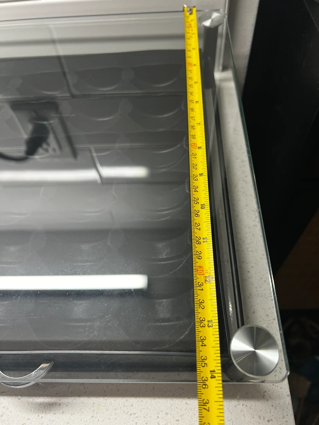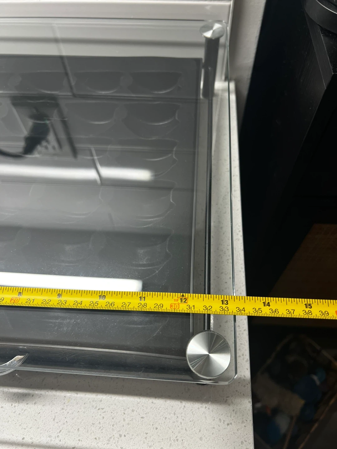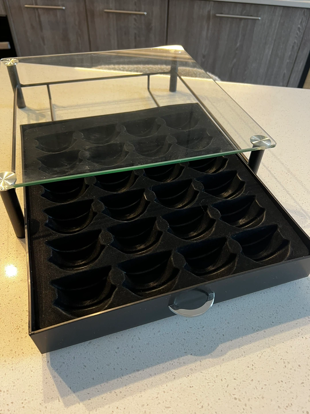 Selling a capsule holder with a glass top and sliding drawer.