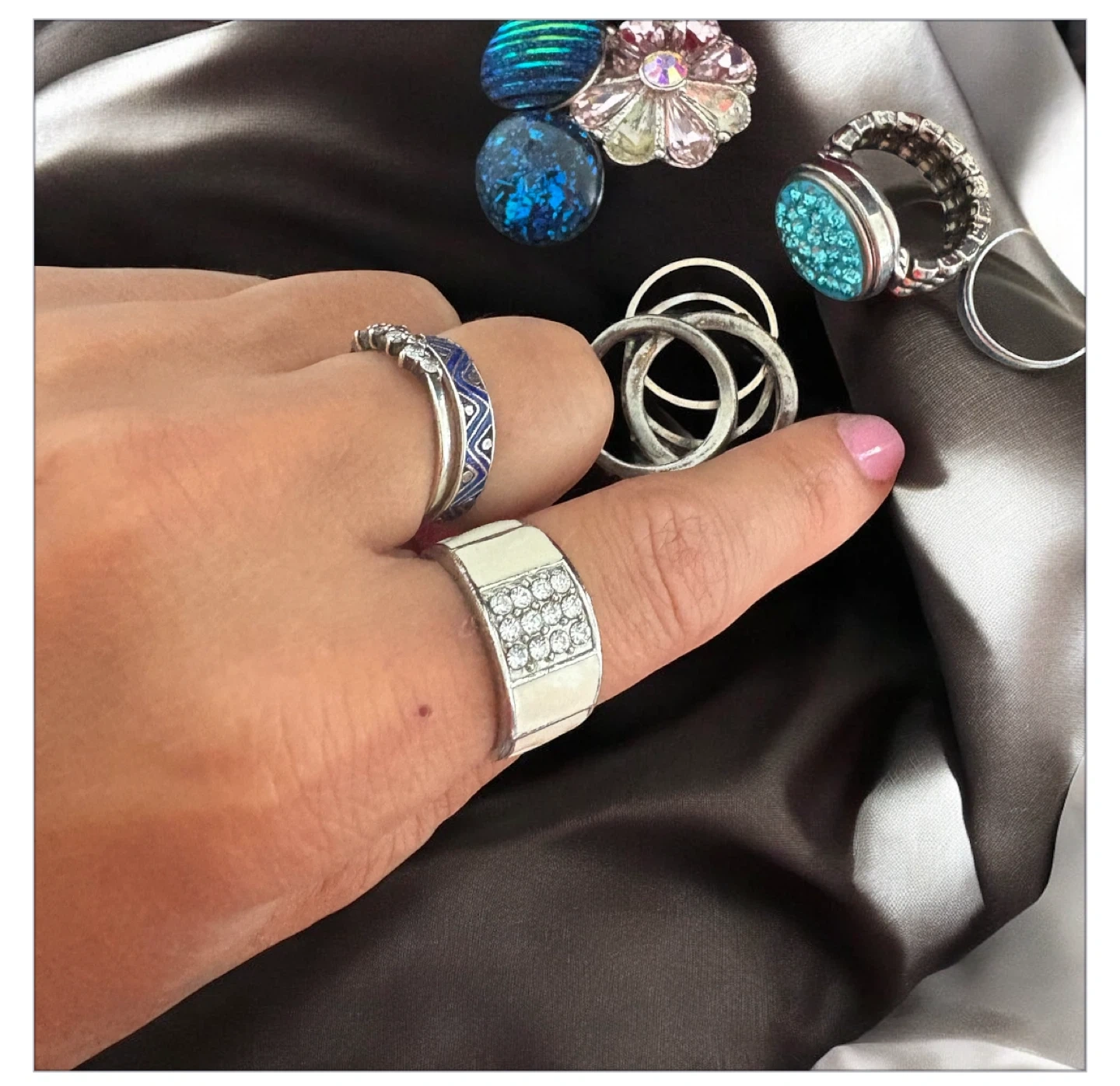 85Selling a collection of costume rings in various styles and colours! Great for adding some fun to your outfits. They are in good condition and ready for a new home, all size 7 #HandmadeJewelry #MinimalJewelry #StatementJewelry #BohoJewelry #LuxuryJewelry #GoldJewelry #SilverJewelry #GemstoneJewelry #ring #free