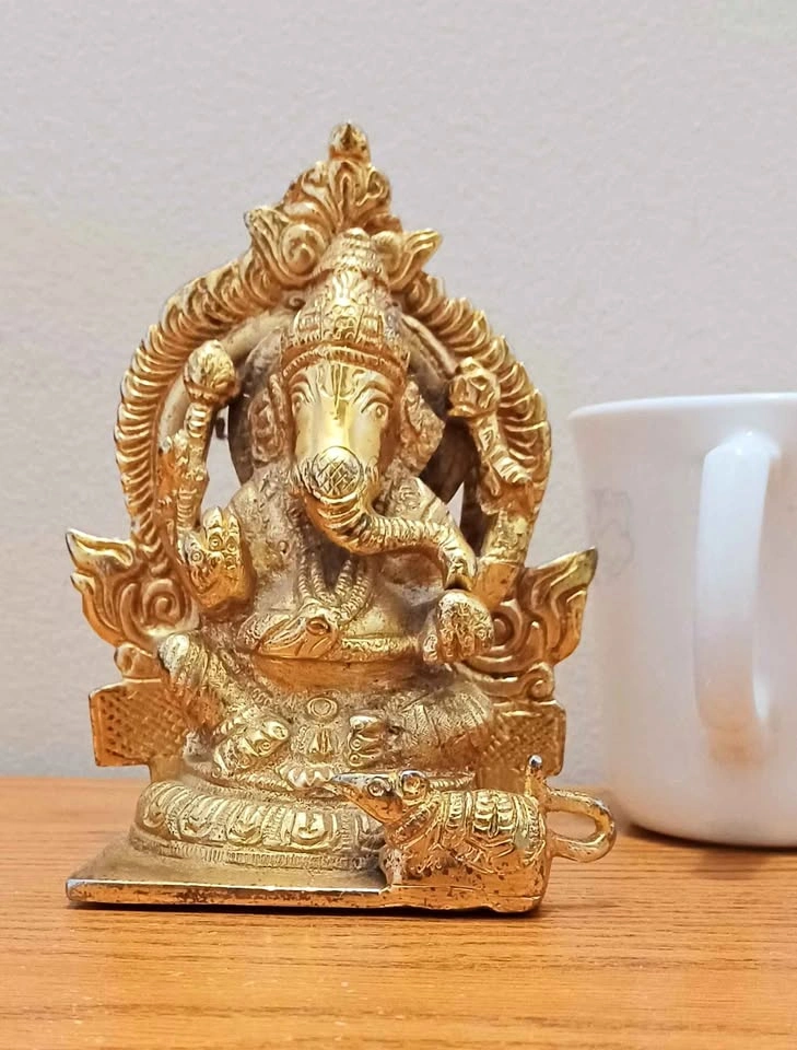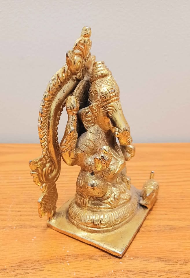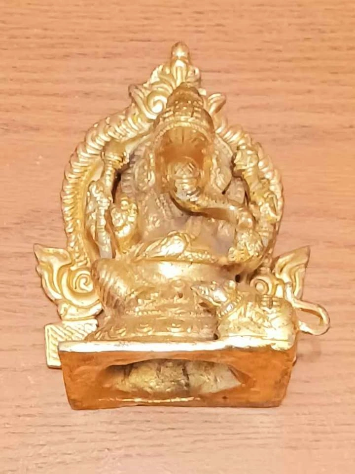 Heavy 24 Kt Gold Ganesh Sitting with Prabhavali Sculpture