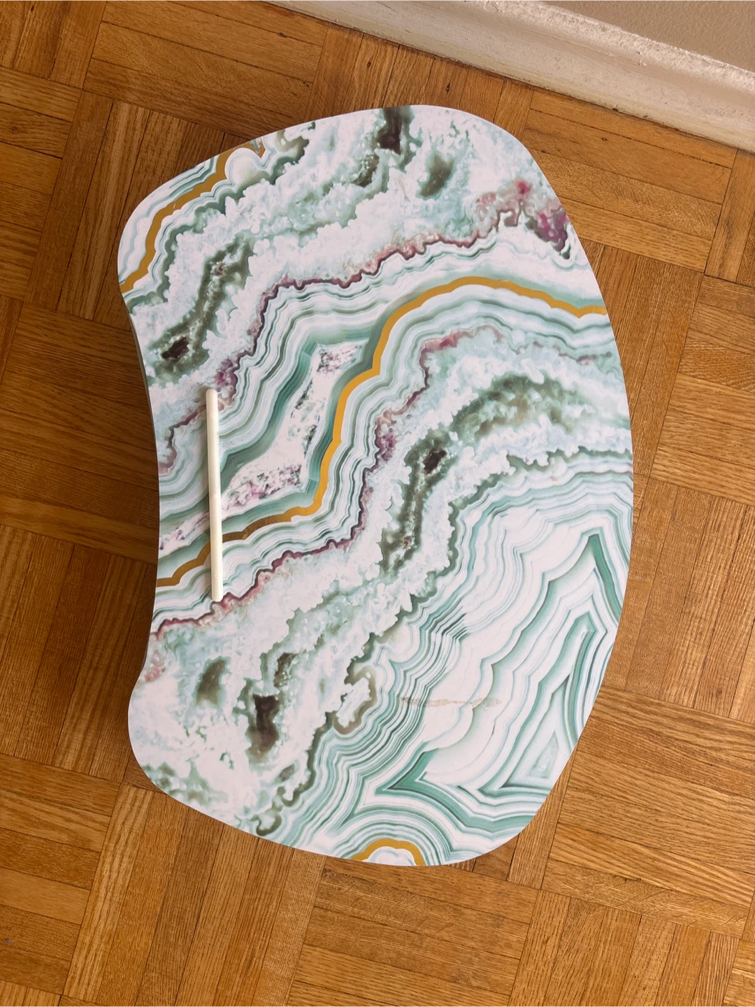 A lap desk featuring a beautiful marble pattern! It's perfect for working or relaxing comfortably from your bed or couch. It also comes with a pen holder!
