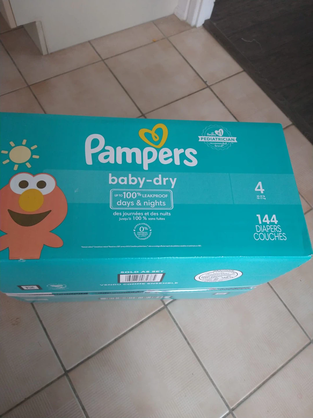 Pampers size 4 seal pack new never open. Good for weight 10-17kg kids. I brought in $ 50 cad. Selling price is $ 40 cad. Number of count is 144 diapers. Pick up near Kariya Park, Mississauga.