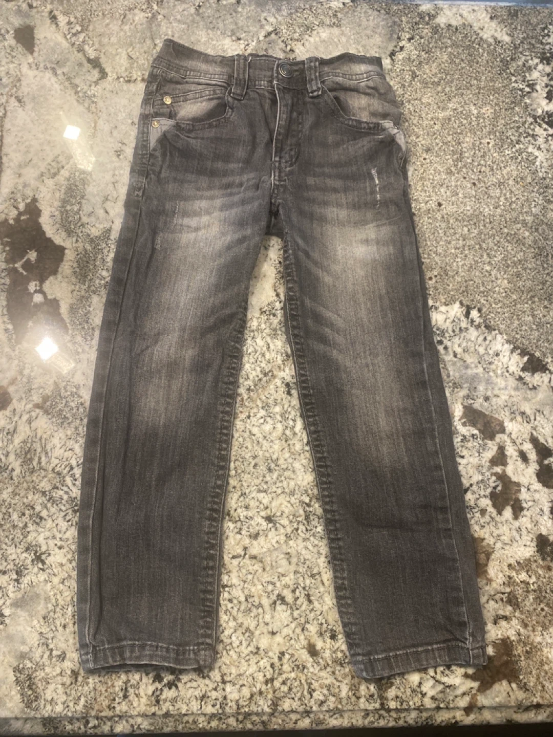 Size 6 Boys' black denim jeans in good condition. They look great and have a stylish, slightly distressed look. Perfect for everyday wear!
