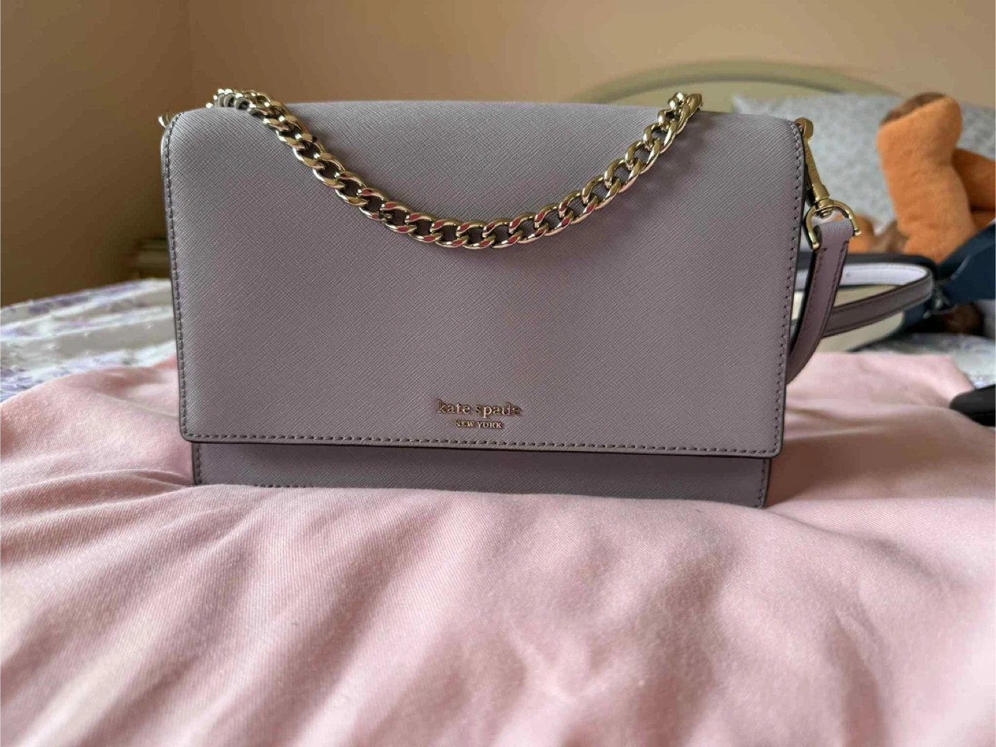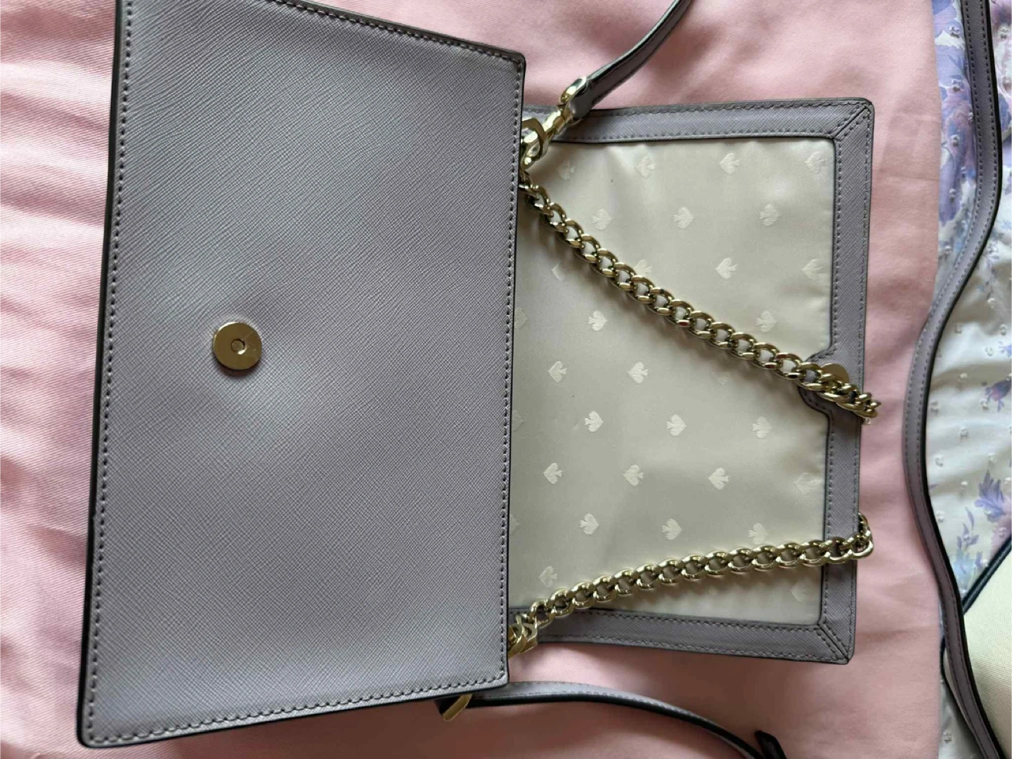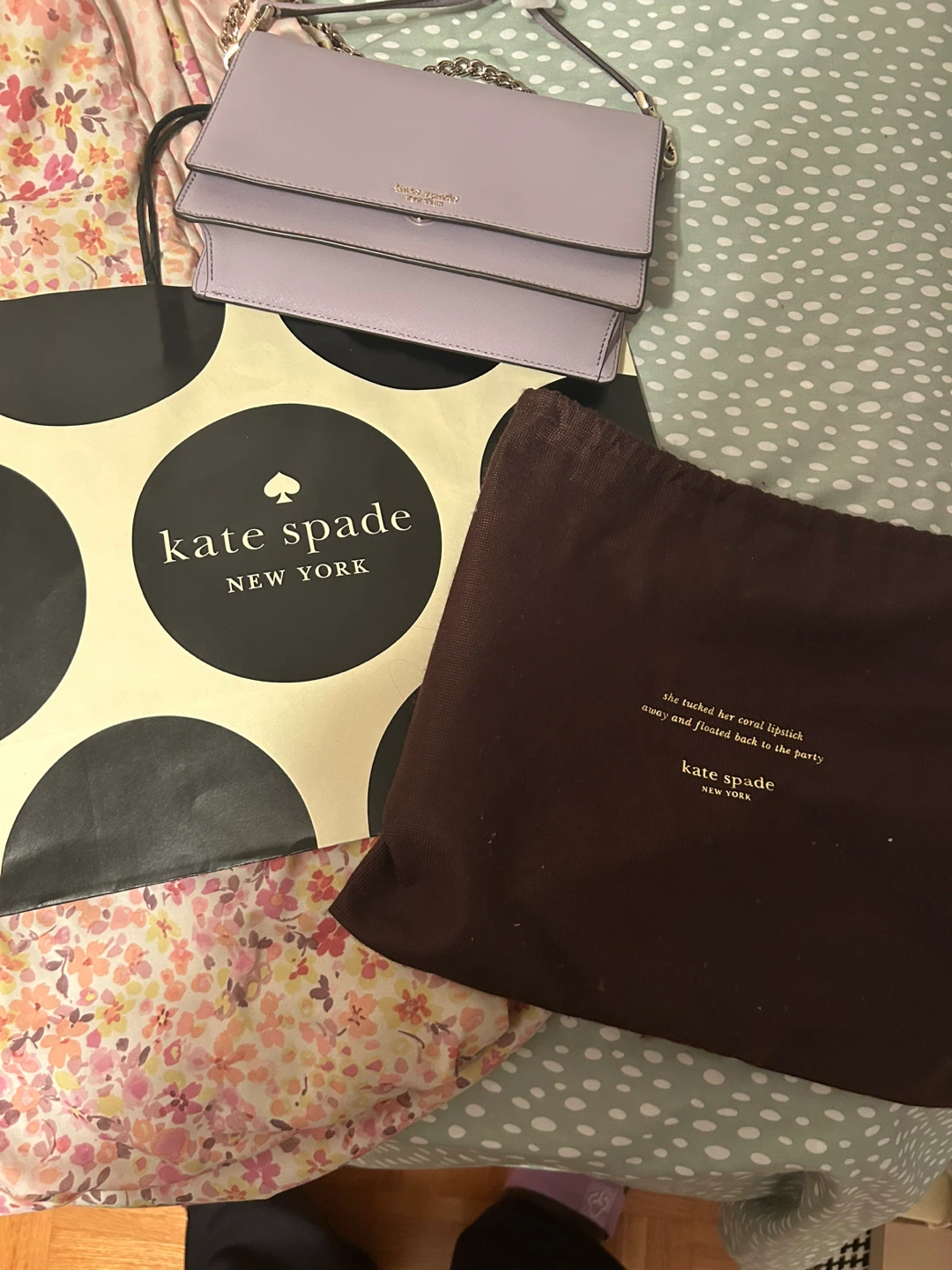 Selling a cute Kate Spade crossbody bag in a lovely lilac colour. It has a silver chain shorter handle, and longer strap. In gently used condition. Perfect for everyday use or a night out.