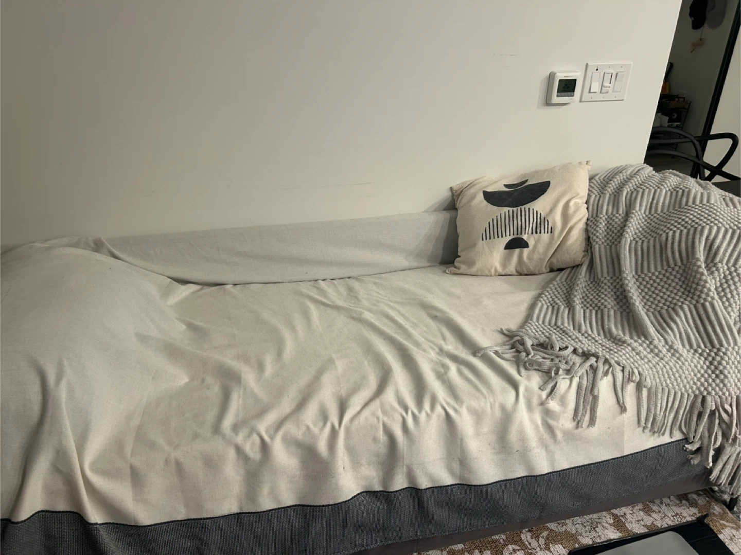 • Width: Approx. 200 cm (≈ 79 in) • Depth & Height: Available upon request • Material: Elegant grey velvet upholstery • Condition: Gently used – always covered (as shown in the photo), so the fabric underneath is in great shape. I don’t use this sofa much since I mostly sit at my desk and rarely watch TV. Perfect for most living rooms, with a modern and stylish design. 📍 Pickup only