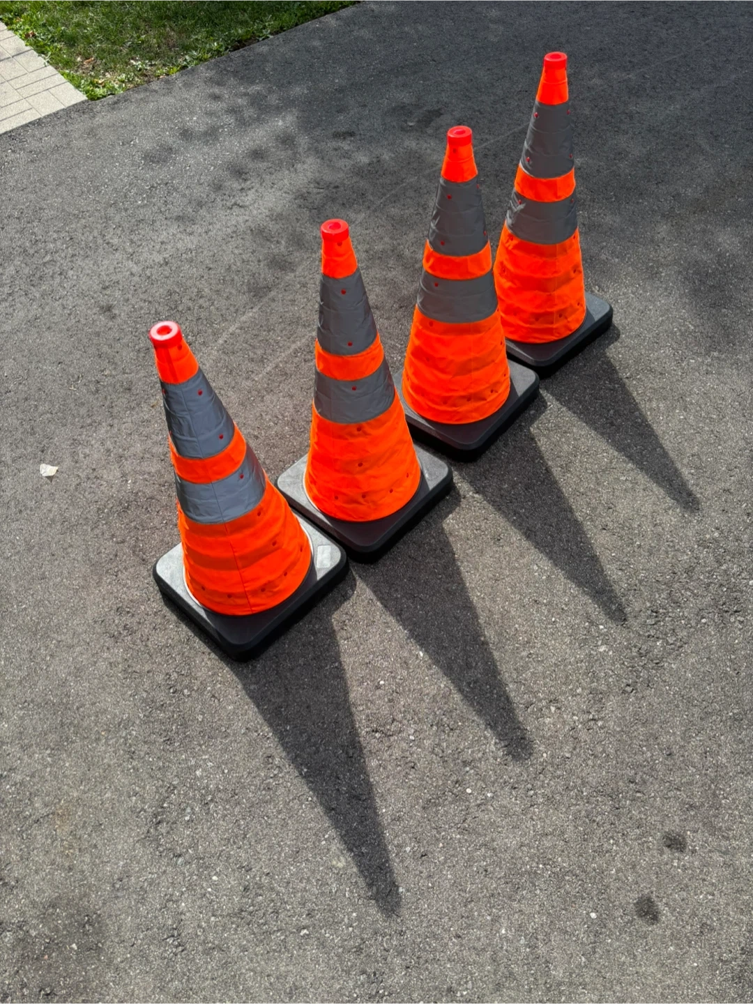 Selling a set of orange traffic cones. Perfect for safety or marking areas. They are in good condition and ready for use