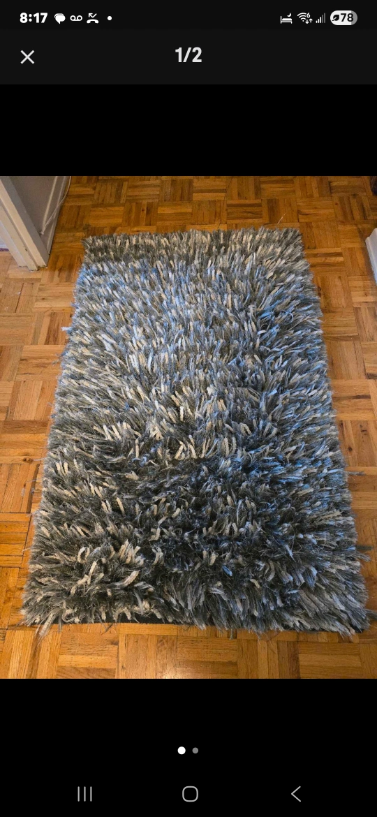 Selling a shaggy area rug in great condition. It's a lovely grey colour and would add a cozy touch to any room! It's perfect for adding some warmth and texture to your space