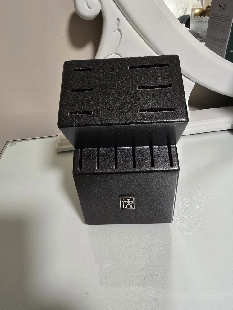 Selling a Henckels knife block. Perfect for keeping your knives organized and safely stored in the kitchen! It's in great condition and ready for a new home