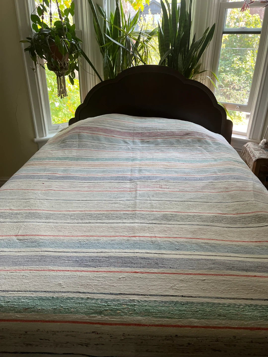 Vintage hand crafted Catalogne bed spread from Quebec