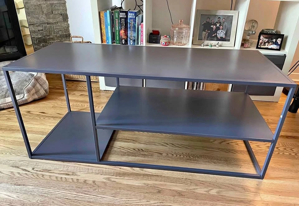 Modern grey steel coffee table – sleek and practical design for any living space.