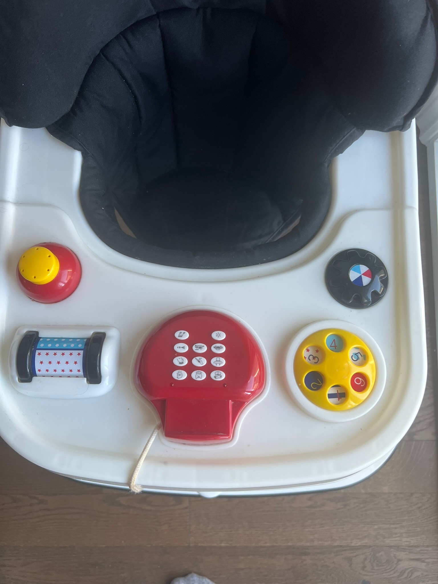 Activity tray with phone toy π, buttons, and spinner