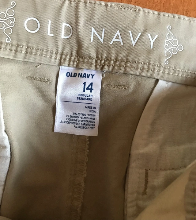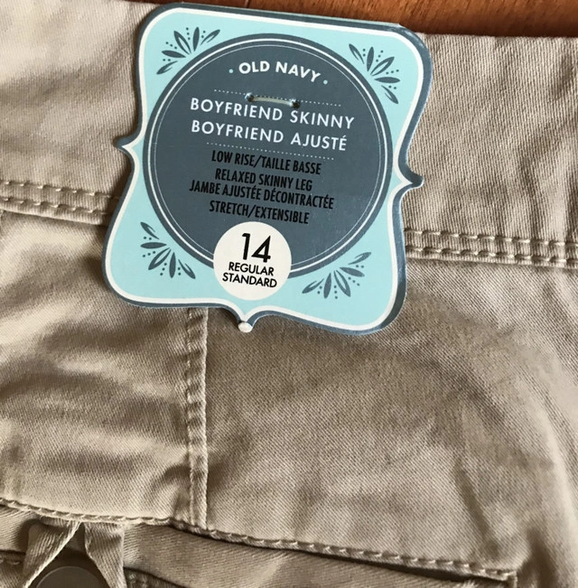 Old Navy Beige pants Boyfriend skinny low rise Relaxed skinny leg stretch Size women’s 14 regular Brand new with tags