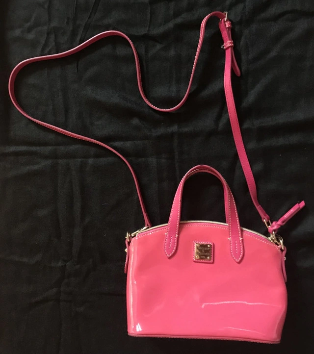 Dooney & Bourke Bright Pink Patent Tote Purse Handbag 10” l x 7” w x 4” d Patent Adjustable long strap 22” Shiny Short handle fuschia Bubblegum pink Barbie pink Patent leather Condition: Used - Like new For Sale By: Owner Curbside pick up: Yes Cash accepted: Yes