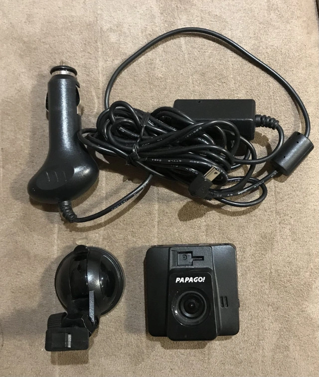 Papago GoSafe 118 Dashcam $50. Superior image quality, reliability, affordability, flexibility and user convenience. These are a few benefits of having a digital camcorder. The 2" LCD screen empowers flexible shooting from various angles. Record HD quality videos and experience crystal clear output. Weight 1.48 oz. Dimensions (L x W x H): 1.10 x 2.20 x 2.10 Inches. The Papago GoSmart 118 is a dashcam designed for vehicle recording and safety. Here are some key features and details about this model: 1. Video Quality: The GoSmart 118 offers HD resolution, providing clear video footage of your driving. This helps in capturing important details like road signs, license plates, and incidents. 2. Field of View: It features a wide-angle lens to cover a broad view of the road, which is essential for recording everything happening in front of the vehicle. 3. G-Sensor: Equipped with a G-sensor (gravity sensor), the dashcam can detect sudden impacts or changes in motion. This feature automatically saves and locks the current video file in the event of an accident, preventing it from being overwritten. 4. Loop Recording: The dashcam supports loop recording, which means it continuously records footage and overwrites the oldest files when the storage is full. This ensures that you always have recent footage available. 5. Night Vision 6. Display: LCD screen for viewing live footage, settings, and playback directly on the device. 7. Storage: The GoSmart 118 supports microSD cards for storage 8. Mounting: It comes with a suction mount for attaching the dashcam to the windshield. 9. Comes with auxiliary power adapter 10. Comes with Micro SD card 64GB Condition: Used - Like new. Cashless payment and cash accepted.