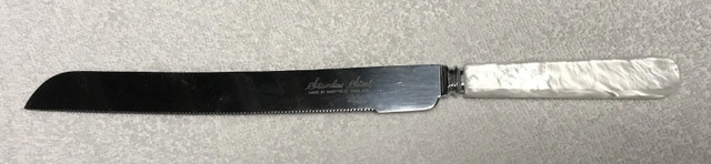 Vintage Bread Wedding Cake Knife Mother of Pearl Handle Stainless Steel blade Sheffield England Condition: Used - Like new For Sale By: Owner Curbside pick up: Yes Cash accepted: Yes