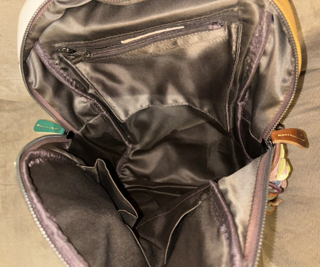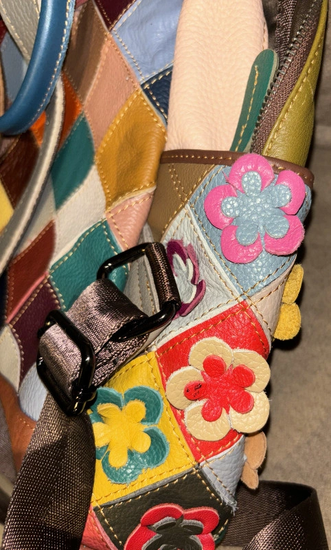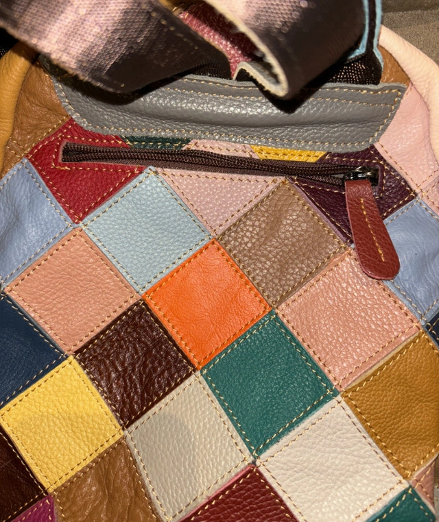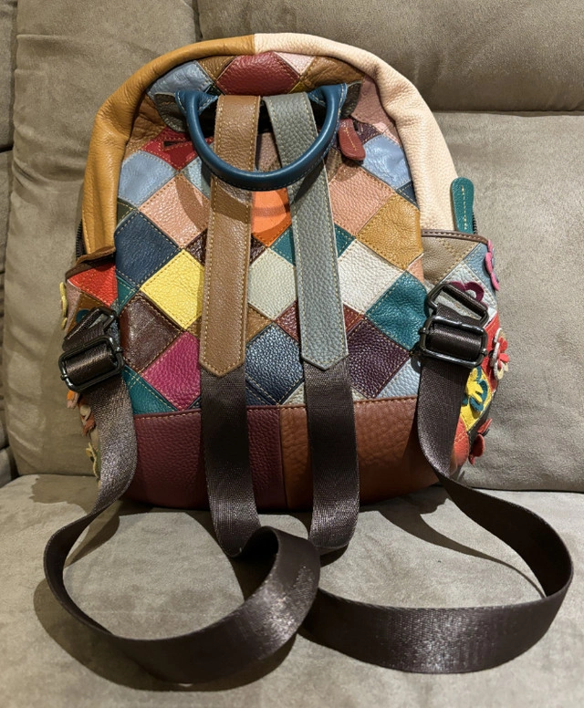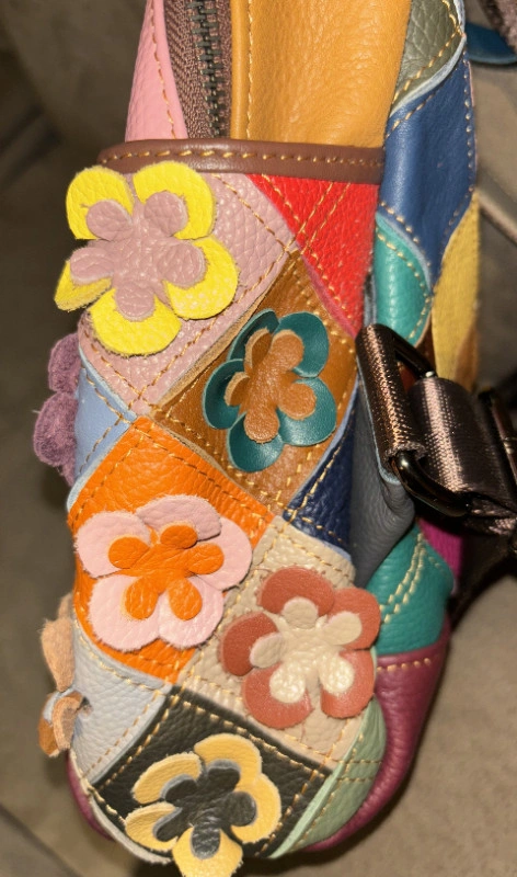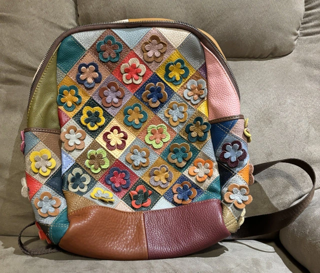 Vera Pelle Multicolour Flowers Leather Backpack Beautiful multicolour patchwork backpack with flowers and diamonds Purchased in Italy Never Used MONTE AMIATA: women's backpack bag in soft leather, color: MULTICOLOR - FLOWERS, Made in Italy 2 inner zip pockets 2 inner pockets 2 side pockets 1 back zip pocket MONTE AMIATA: a very original backpack, it is entirely hand-produced in genuine Italian leather, combining different pieces of colored leather into a single canvas that forms the backpack, thus giving it a fresh and particular appearance. Thanks to its modern shape, this model easily adapts to different styles and outfits. MONTE AMIATA is a well-organized medium-sized backpack, it has a single large compartment, three comfortable external pockets and 5 internal pockets to always have everything in order. A perfect combination of style and comfort. The colors are random. Beautiful Christmas gift