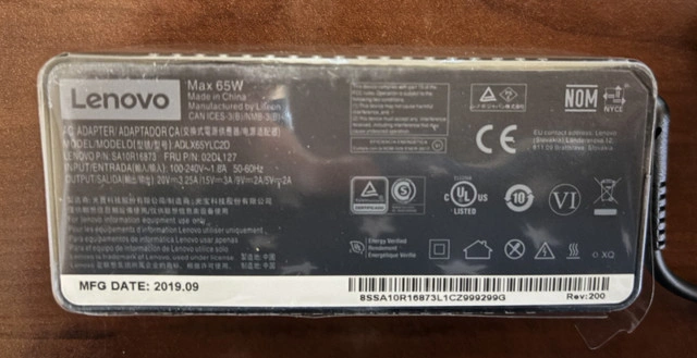Lenovo 65w USB Type C AC Adapter 4X20M26268 with 2 Prong Power Cord Genuine Lenovo 65w USB type c ac adapter includes the USA 110v 2 prong wall cord / power cord This item is only used in select Lenovo notebooks and tablets that have a USB type c connection type Lenovo model numbers are suffix specific, Please be sure to check compatibility This Lenovo 65W Standard AC Adapter (USB Type-C) Power Adapter offers fast, efficient charging at home, in the office, or on the go. This power adapter is compatible with ThinkPad USB-C enabled Notebook and Tablet