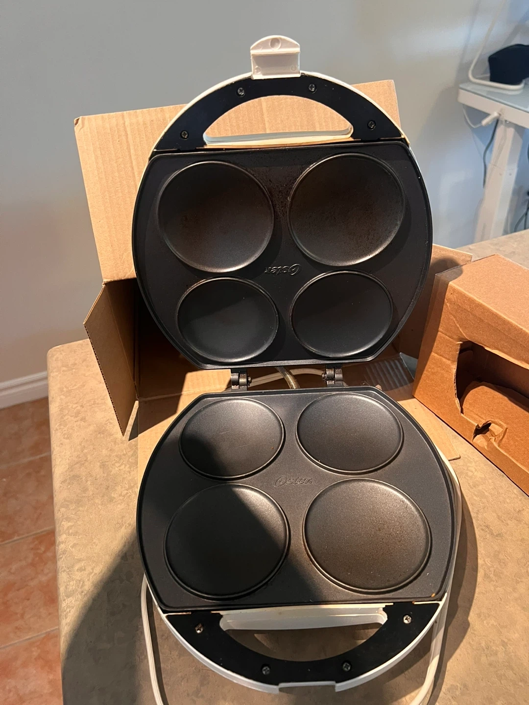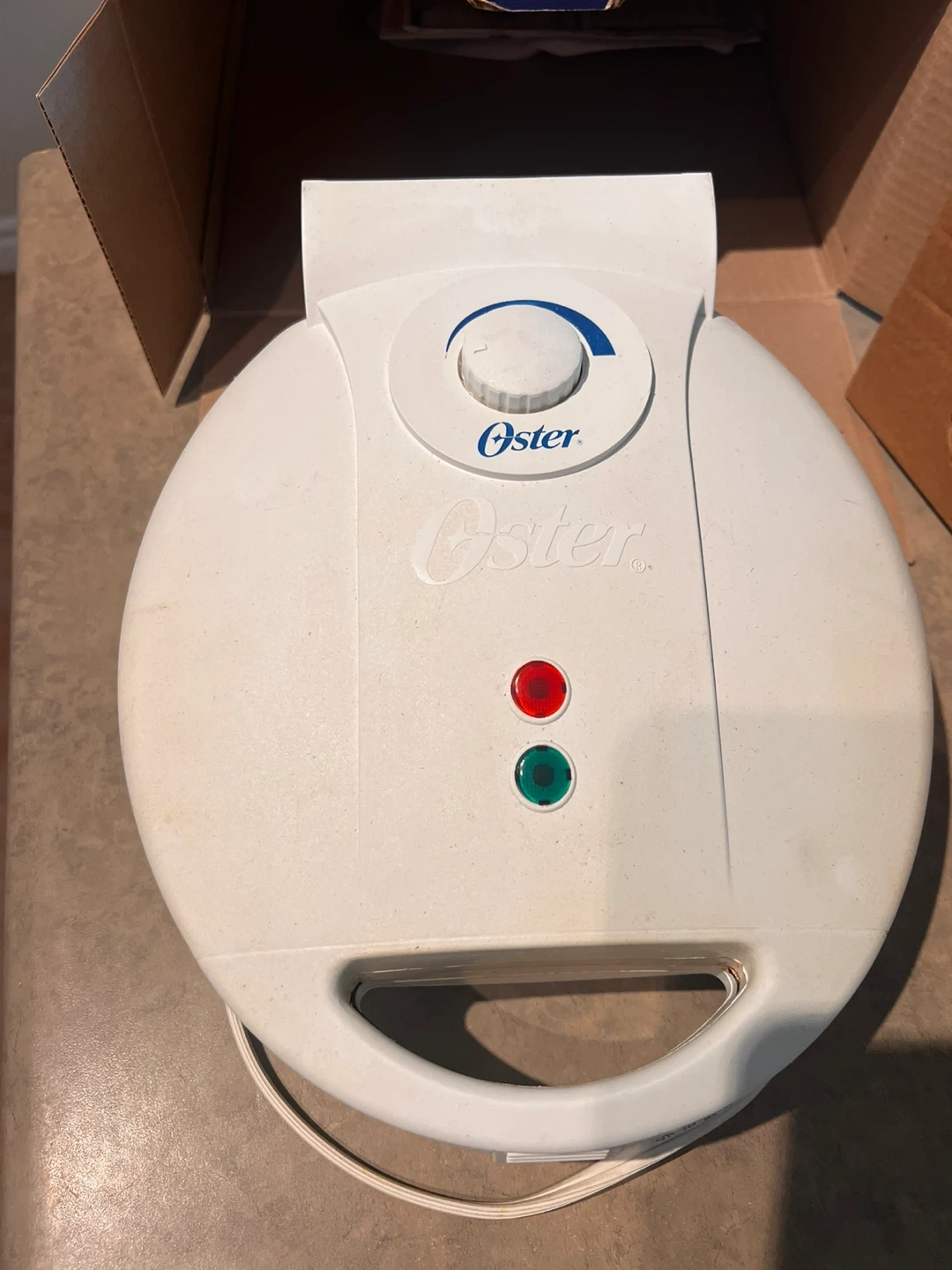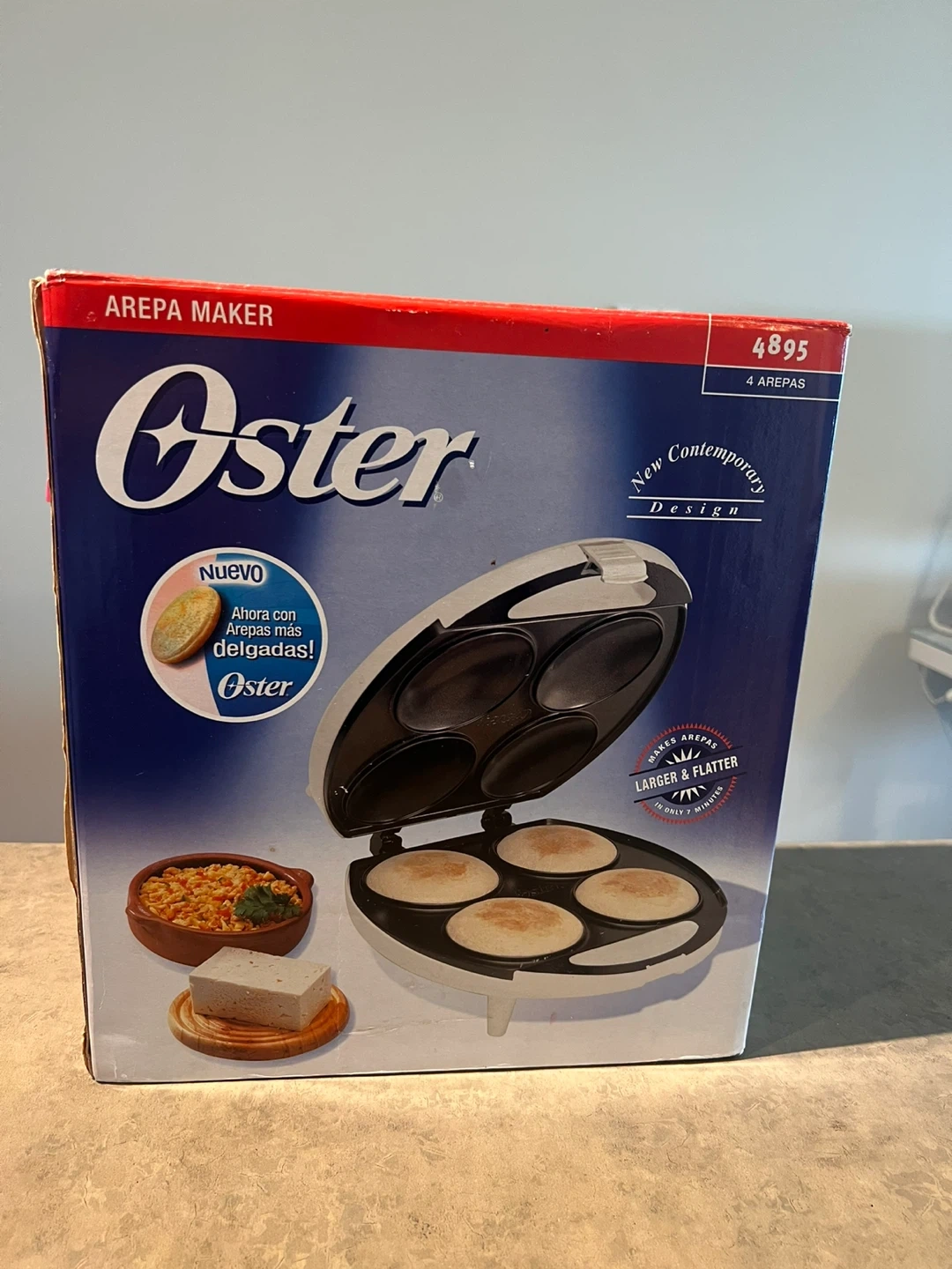 680Selling an Oster Arepa Maker in excellent condition! It comes with the original box. It makes 4 arepas at a time and features a contemporary design. It is larger and flatter than other models. It's ready to make some delicious arepas! Cash only π« $10