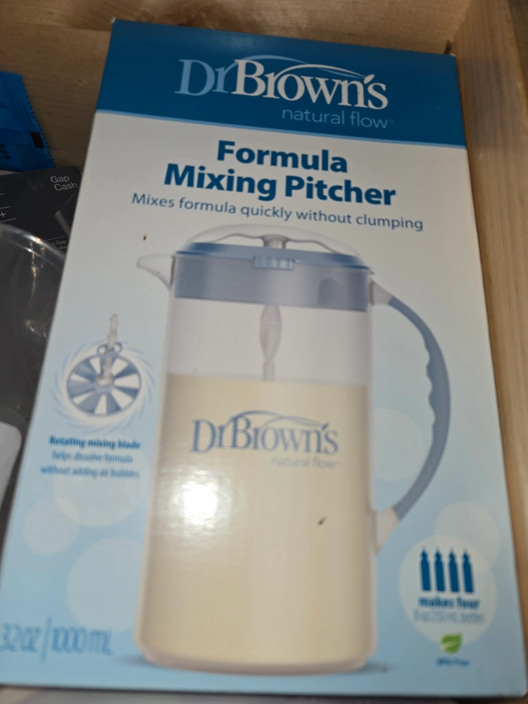 I'm selling a Dr. Brown's Formula Mixing Pitcher. It mixes formula quickly without clumping. It also has a rotating mixing blade that helps dissolve formula without adding air bubbles. It makes four 8 oz/250 mL bottles. The pitcher is 32oz/1000 mL