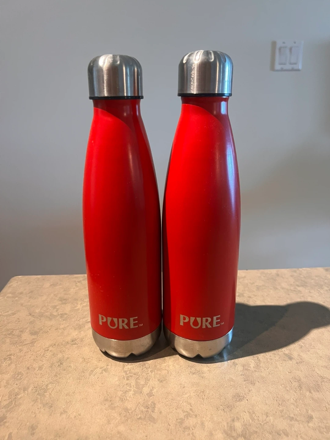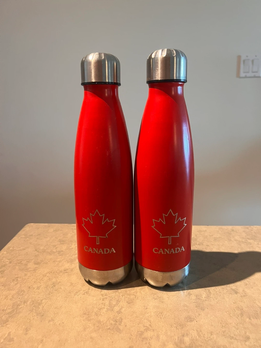 Keep your drinks cold or hot with this PURE insulated bottle! It features a Canadian maple leaf design and holds 500 ml (17 fl oz) $5 for both Cash only.