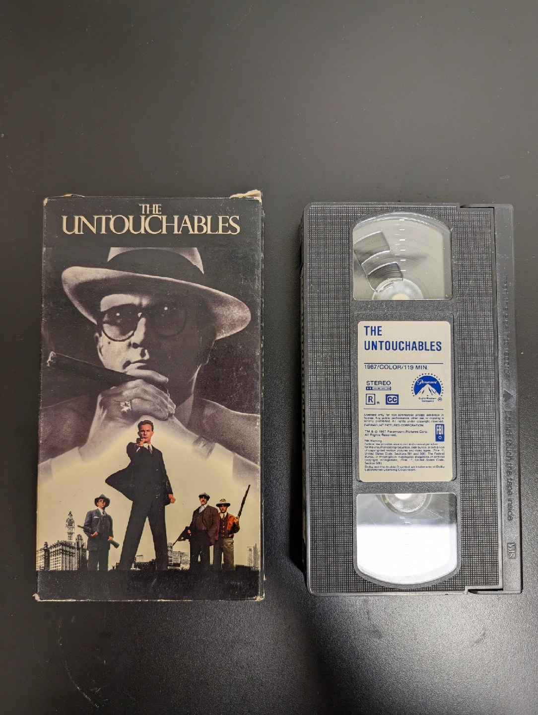 73Selling a VHS tape of the movie "The Untouchables" released in 1987. It's in colour and has a running time of 119 minutes. A classic for any movie collector!