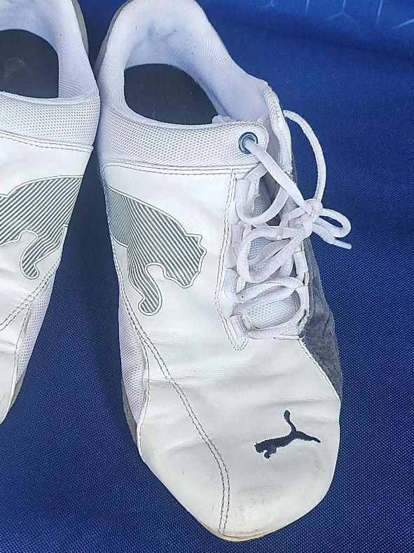 Selling a pair of Puma sneakers in white. They have the classic Puma logo and would be great for everyday wear. Please see the photos for condition