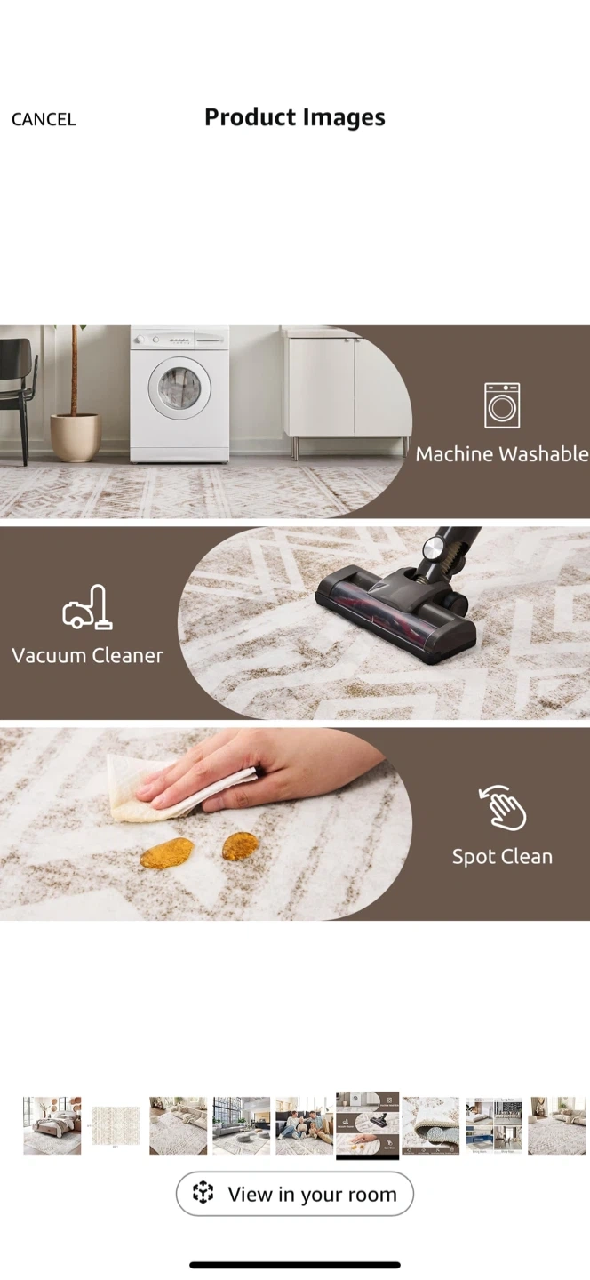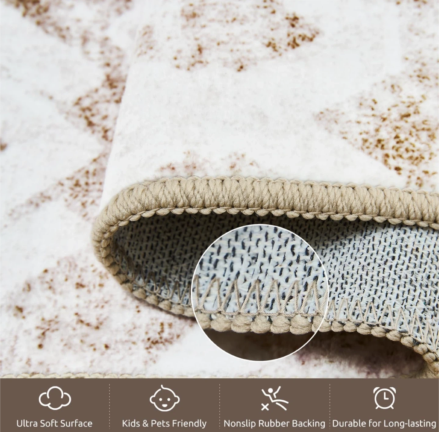 8’x10’ Vintage Style Area Rug, Non Slip, Machine Washable