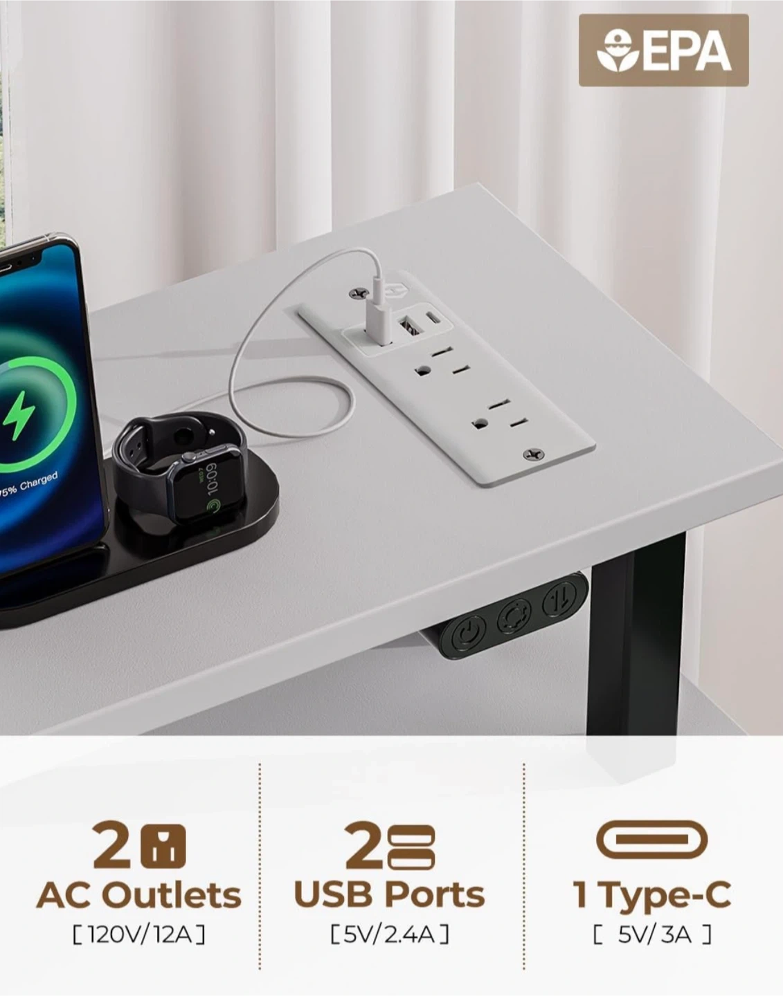 Desk is 8 months old , practically new except for one paint chip near the power outlet.