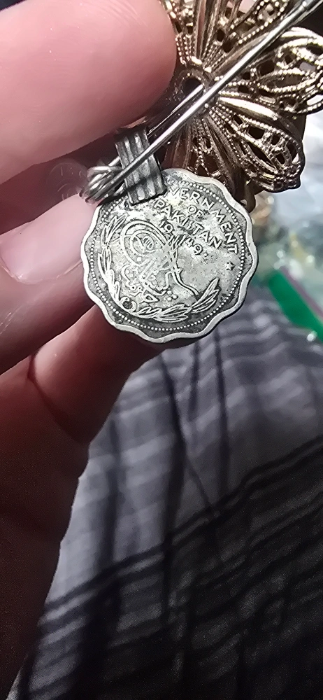 I'm selling a vintage Pakistan coin. It has a unique design with a star and crescent moon on one side and text on the other. It's a cool piece for collectors or anyone who appreciates vintage coins