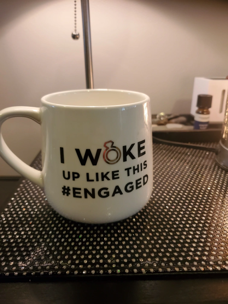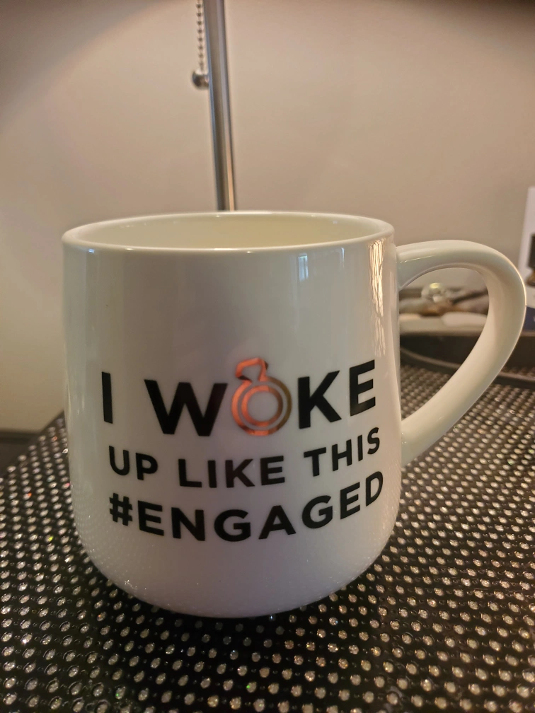 Mug that reads "I w💍ke up like this . Engaged" on both sides ! Only used a few times. Originally from Indigo. Makes a cute gift for a recently engaged lady!