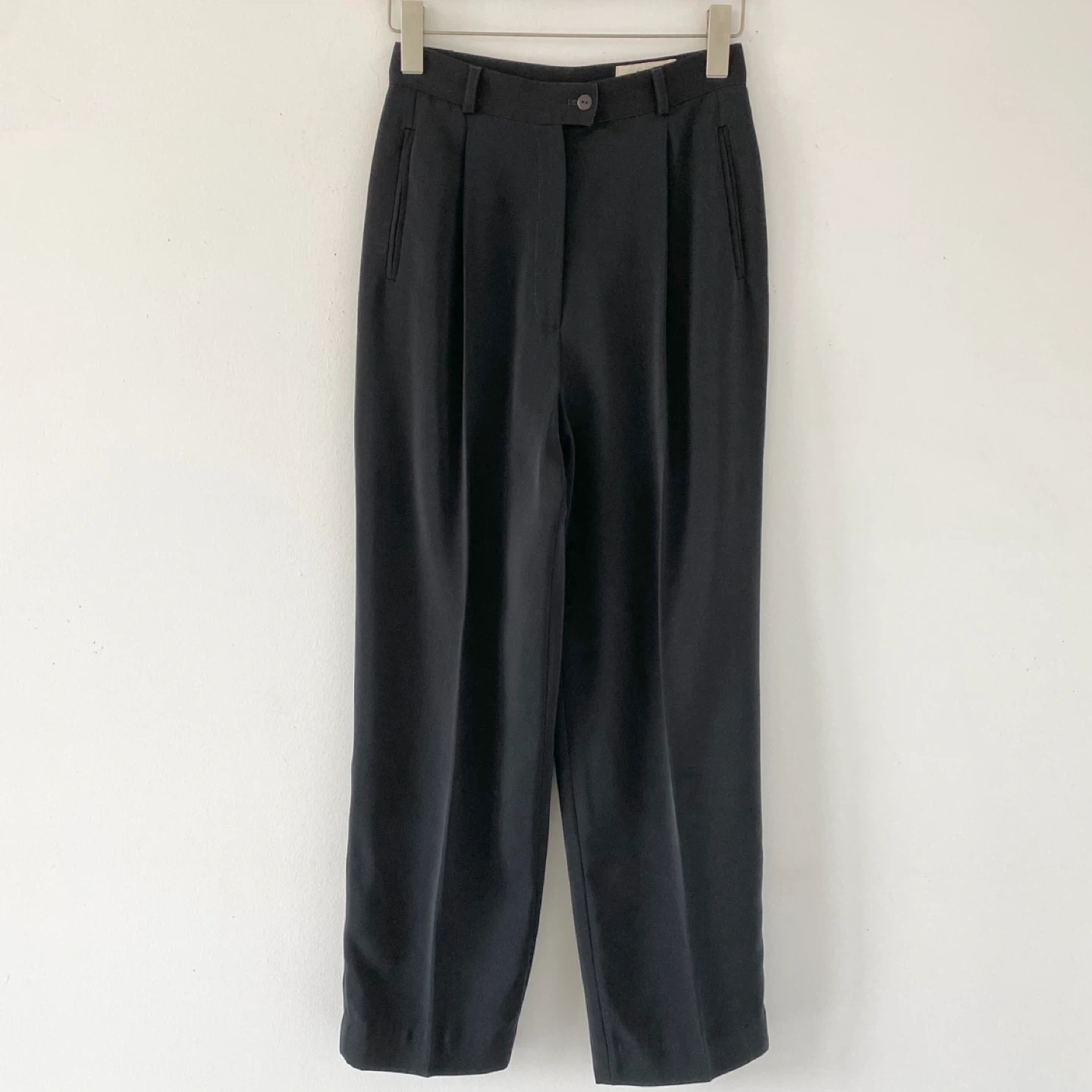 Pick up only in Leslieville (Queen and Pape) Check out other listings! Maison 123 Paris high waist trouser. Made of lightweight 100% polyester in black. It's very smooth and drapes beautifully. They are well loved but no staining or damage. Front pockets are still sewn shut. They are clean and in great condition. Made in France Size 36 (US XS) Approximate measurements laid flat Waist 12.5” Rise 13” Hip 19” Inseam 26.5” Leg opening 7.75