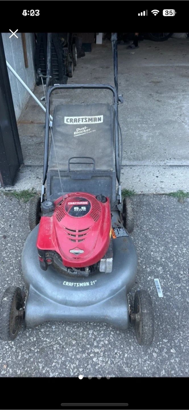 Selling a Craftsman 21" lawn mower with a 5.5 HP engine. It's a great lawn mower for keeping your yard looking tidy. It has a dual blocker. Model number is 0B0806M 0027.