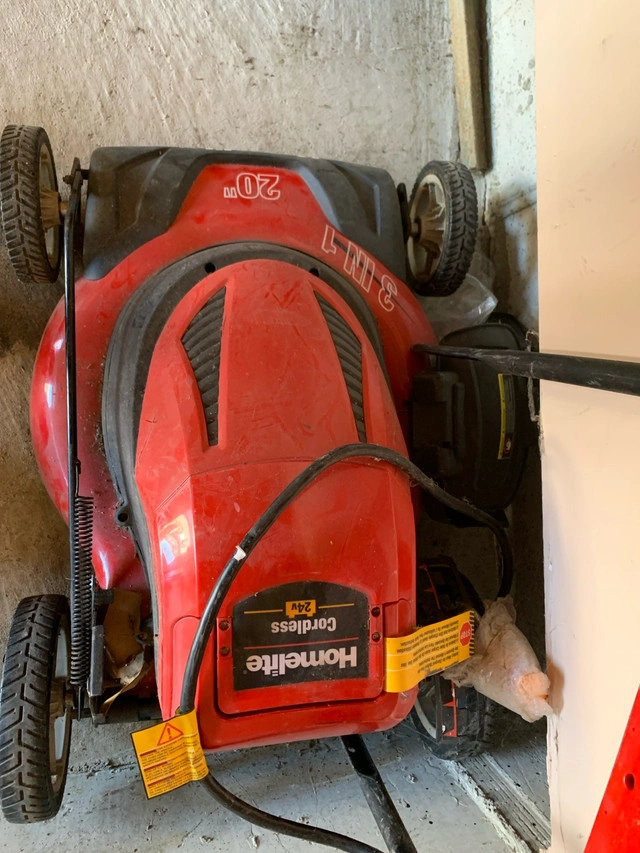 I'm selling a Homelite 24V Cordless 20-inch 3-in-1 Lawn Mower, perfect for keeping your lawn neat and tidy! This mower offers convenience and versatility with its cordless design, making yard work a breeze. It's in used condition, but runs great. Specifications: * Brand: Homelite * Power Source: Cordless * Voltage: 24V * Cutting Width: 20 inch * Type: 3-in-1 (Mulch, Rear Bag, Side Discharge) It requires a battery replacement.